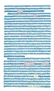 Convidamos a escoller unha páxina das obras Circe ou o pracer do azul ou Morgana en esmelle e aplicar nela esta técnica: resaltar as palabras que desexes conservar e escurecer as demais, creando así un novo texto poético a partir do orixinal. Como no seguinte: