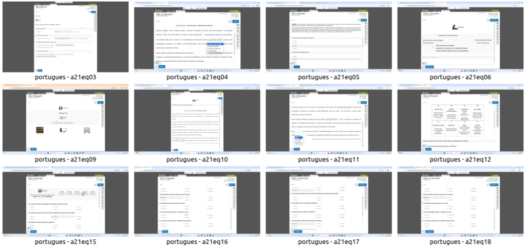 - Relativamente aos itens de expressão oral, para gravar as respostas, é necessário deixar gravar até ao fim do tempo, mesmo que os participantes terminem antes do tempo limite. De outro modo, as respostas não ficam gravadas.